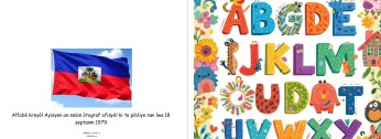 Upptäck det haitiska kreolska alfabetet med färg och glädje! Låt ditt barn utforska en spännande värld av språk och kultur med denna färgglada alfabetbok. Boken är gjord för barn över hela världen och gör det roligt och enkelt att lära sig det haitiska kreolska alfabetet. Varje bokstav visas med fina bilder och enkla ord som hjälper barn att lära sig på ett lekfullt sätt. Samtidigt får barnen upptäcka mer om Haiti och dess kultur. I boken finns bilder på traditionell mat, föremål och saker från vardagen i Haiti, så att barn kan lära sig och ha roligt på samma gång.